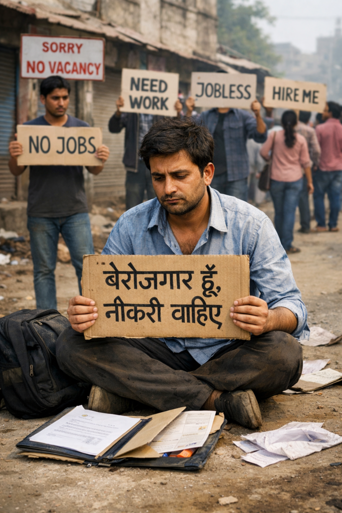 भारत में जनसंख्या वृद्धि की दर बहुत अधिक है। हर साल लाखों युवा रोजगार की तलाश में श्रम बाज़ार में प्रवेश करते हैं, लेकिन उतने नए रोजगार के अवसर पैदा नहीं हो पाते। परिणामस्वरूप बेरोज़गारों की संख्या लगातार बढ़ती जाती है।